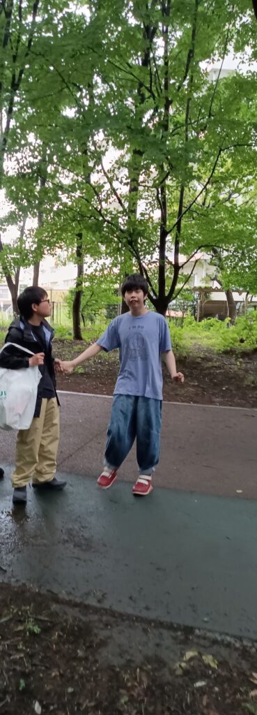 その後は 公園 へ移動し、施設の室内スペースで昼食タイム。