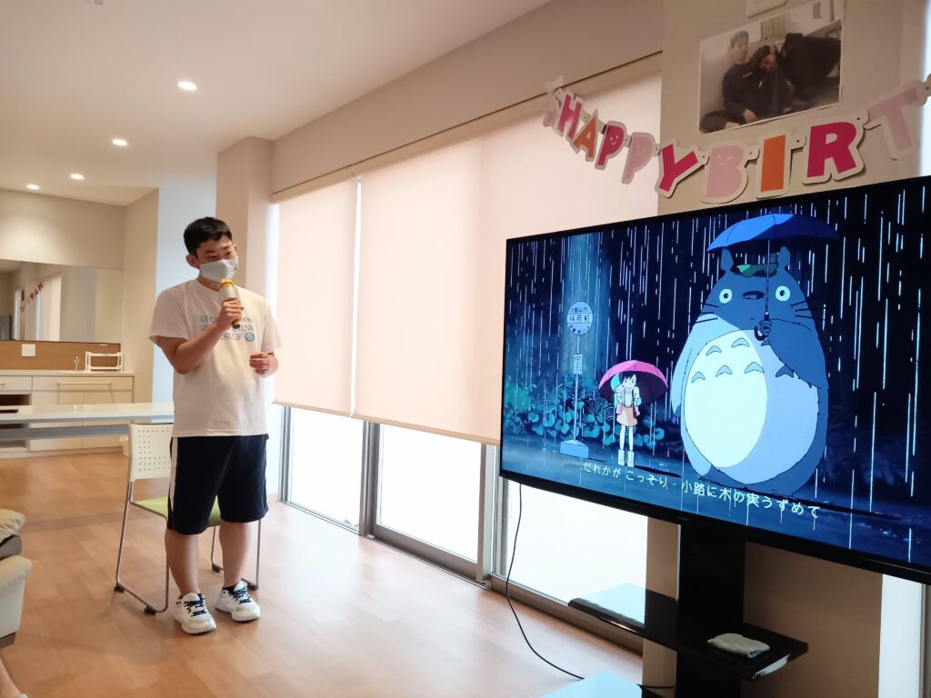 最後は利用者さんにバースデーカードをお渡しして、お祝いの気持ちを込めて記念撮影をしました。