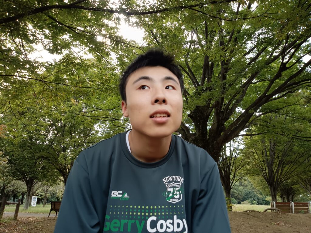 公園を包む木々の葉は、緑から黄色へと移ろい始め、やわらかな光が心地よい午後の空気を感じさせてくれます。