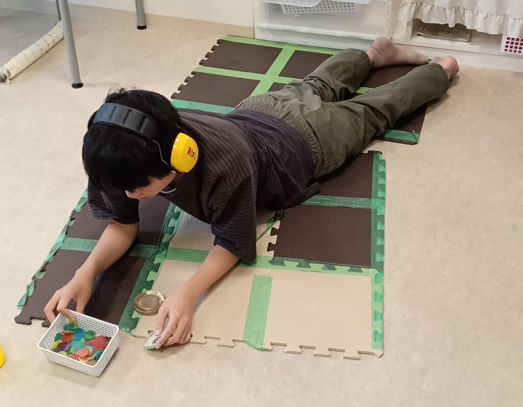 マットに横になり、ゆったりと体を休めている利用者さん。静かな空間に、どこか心が落ち着くようなひとときが広がっていました。