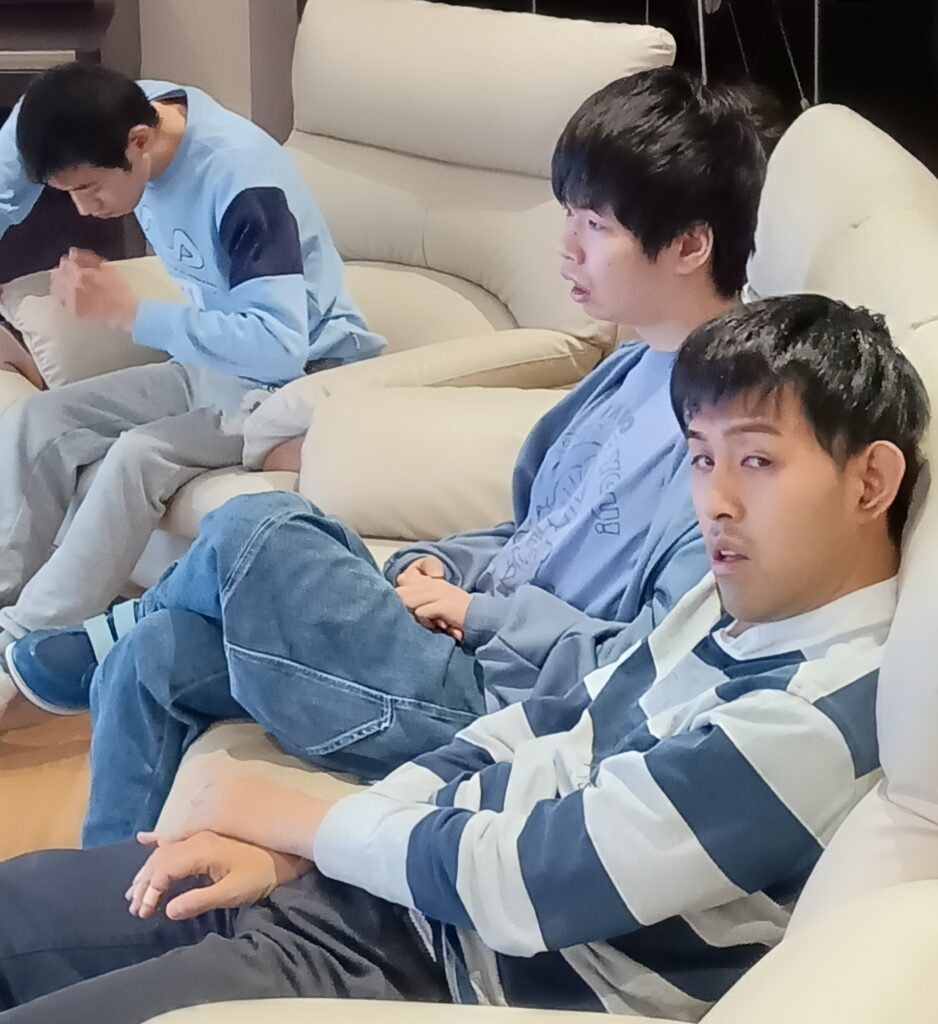 ふかふかのソファーに並んで座り、ゆったりと過ごす利用者さんたち。