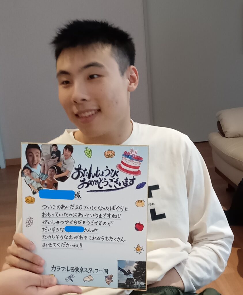 誕生日カードを受け取った瞬間、少し照れくさそうにしながらも嬉しそうな笑顔が印象的でした。