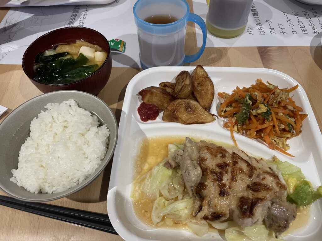 最後に・・・恒例の“今週のご飯”も一部ご紹介したいと思います。まず火曜日(夜)は「鶏の塩麴焼き」「ポテトフライ」「人参とゴーヤとツナのしりしり」「豆腐とわかめの味噌汁」でした。翌朝水曜日(朝)は「サバ缶うどん」と「みかん」。