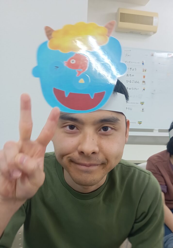 その後はみんなで「節分」の歌を歌い、全員で記念写真を撮りおやつを食べました。