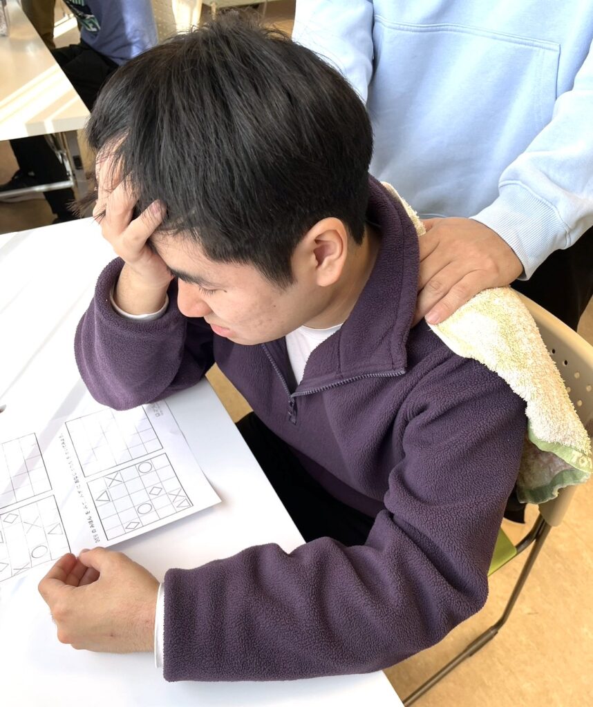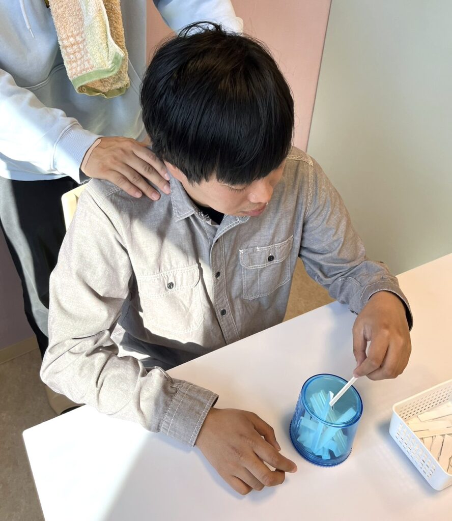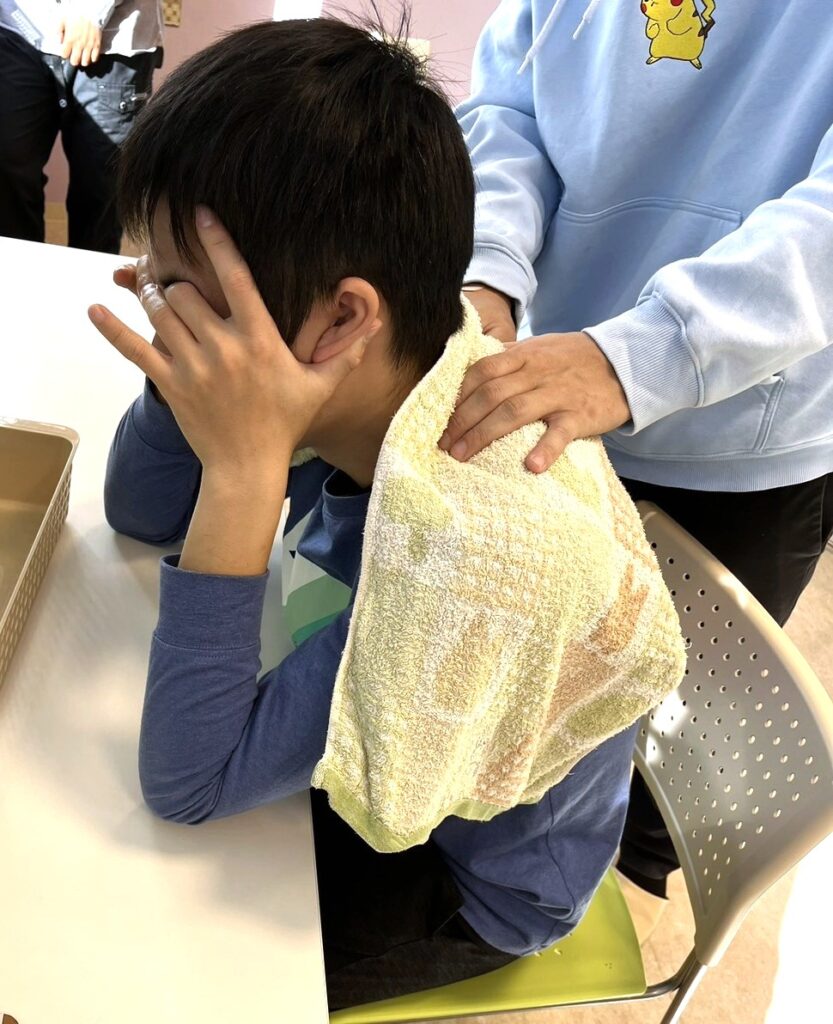 いつもと違う感覚に、じっと様子をうかがいながら受ける姿が見られ、指先の動きに意識を向けている様子が伝わってきました。