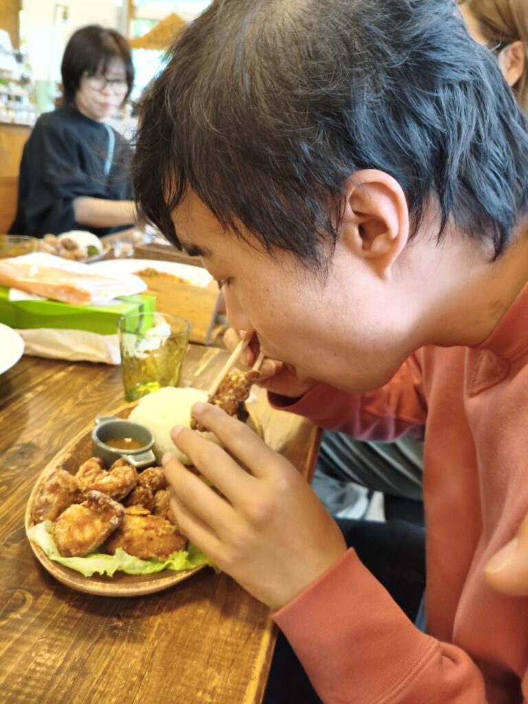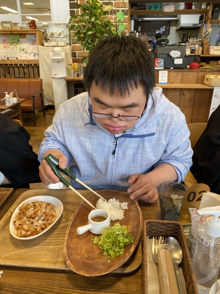 初めての合同外食ということで、今回は利用者の皆さんが混乱しないように数あるメニュのー中から【ナスのトマトスパゲティ】【カルボナーラ】【から揚げ】だけに絞らせていただき、事前にご自身で選んでいただきました!